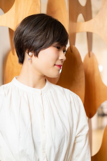 トップの長さは残しつつ、サイドの厚さを取った扱いやすいショートスタイルです。耳にかけたり、毛先をアイロンで巻いたりとスタイリングで雰囲気が変わります。